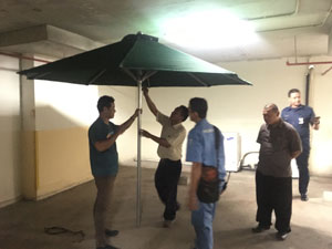 Produksi payung taman dengan bahan -Kayu jati -Galvanis -Stainless |