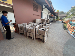 Set meja payung rotan sintetis klub keluarga graha raya, Tangerang Selatan