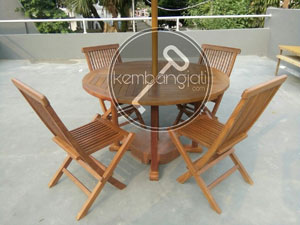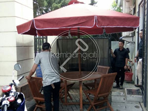 | Keterangan | Bahan kayu jati,finising natural, kain payung suntech 300cm warna hijau |